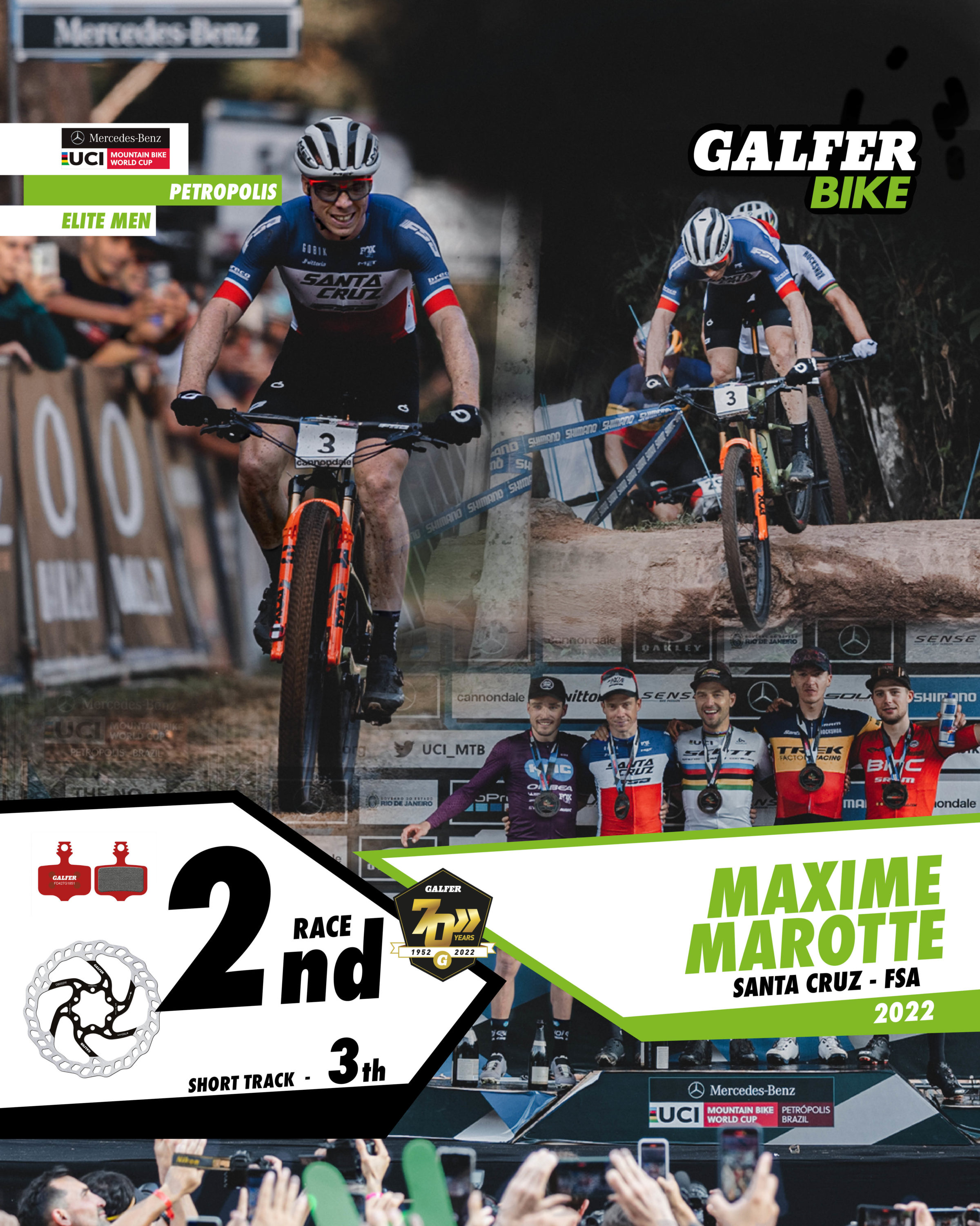 Spectacular start to the World Cup for French rider Maxime Marotte, who climbed the podium in the Short Track and in Sunday’s race with his Santa Cruz equipped with Galfer Bike brake components.