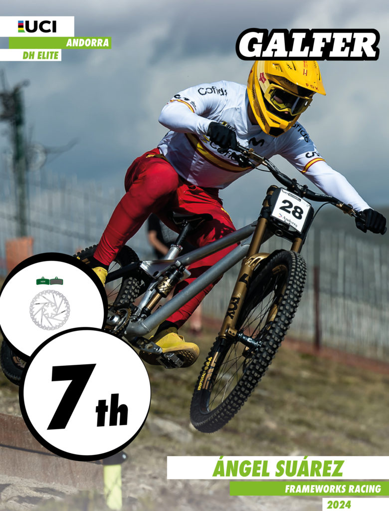 Nella categoria Elite maschile, il pilota spagnolo Ángel Suárez, compagno di squadra di Asa, ha ottenuto la migliore prestazione tra i rappresentanti di Galfer, raggiungendo un impressionante 7º posto finale. La sua discesa veloce, energica e sicura ha evidenziato l’intensa competizione, concludendo a soli 1,3 secondi dal vincitore. Un altro risultato degno di nota è arrivato da Martin Maes (Orbea Enduro Team), che ha gareggiato con il telaio di una bici elettrica modificata (Orbea Wild senza batteria né motore), raggiungendo un più che meritevole 20º posto.