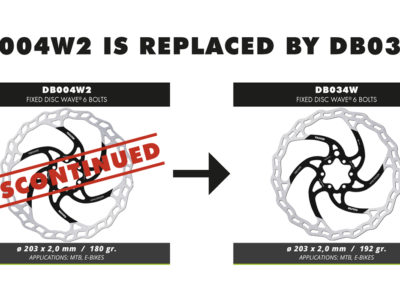 Vi informiamo con la presente, che il disco DB004W2 è uscito di produzione, verrà sostituito dal disco DB034W, che oltre ad avere il foro per inserire il magnete, grazie agli alleggerimenti sulla pista freno molto più piccoli, garantirà una performance migliore del suo predecessore.
