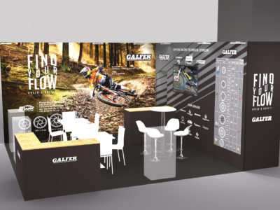 Il design dello stand Galfer a Eurobike è ispirato alla nuova campagna “Find your Flow” con l’immagine del famoso pilota Gee Atherton, fondatore del suo brand di biciclette: Atherton Bikes. Per tutto il 2023 Galfer sarà sponsor del team Atherton Racing che gareggia nella Coppa del mondo UCI DH con Andreas Kolb, Rachel Atherton, Charlie Hatton e Dom Platt.