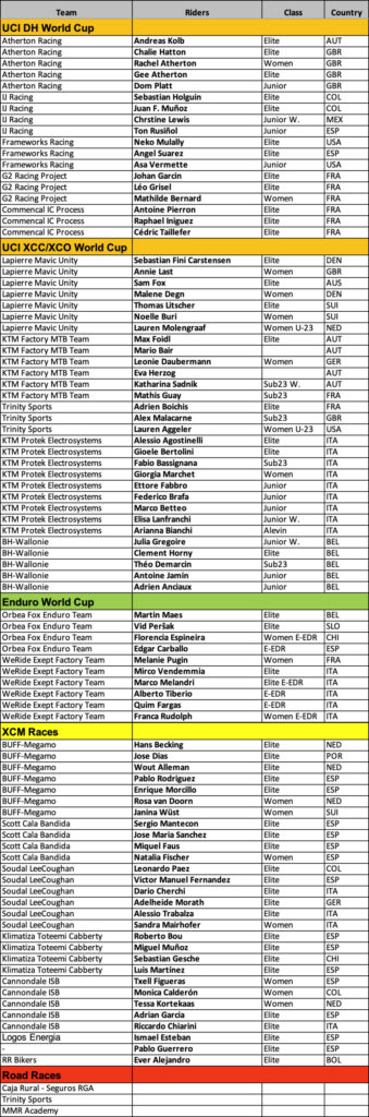 Elenco delle squadre e dei piloti Galfer Bike 2024: