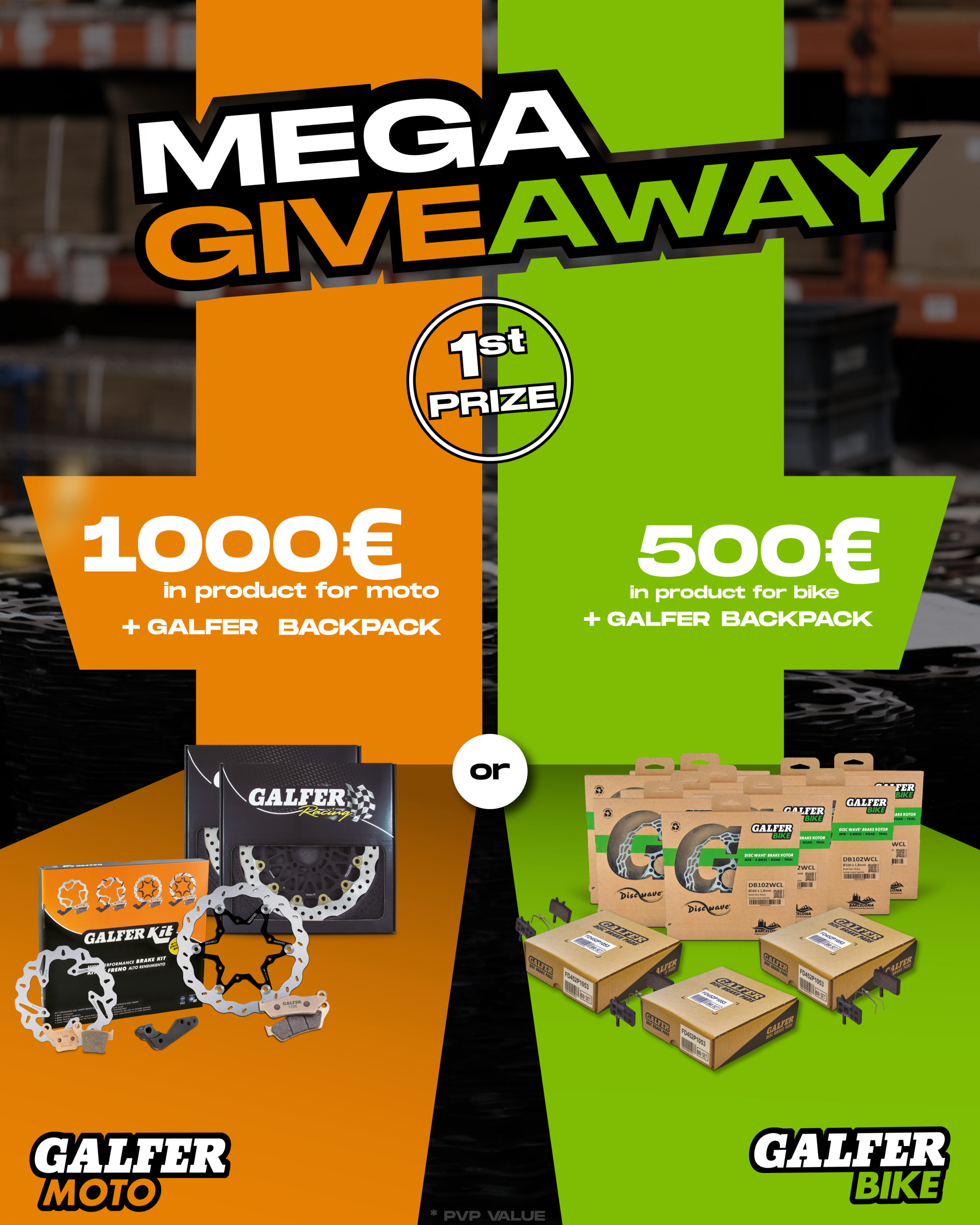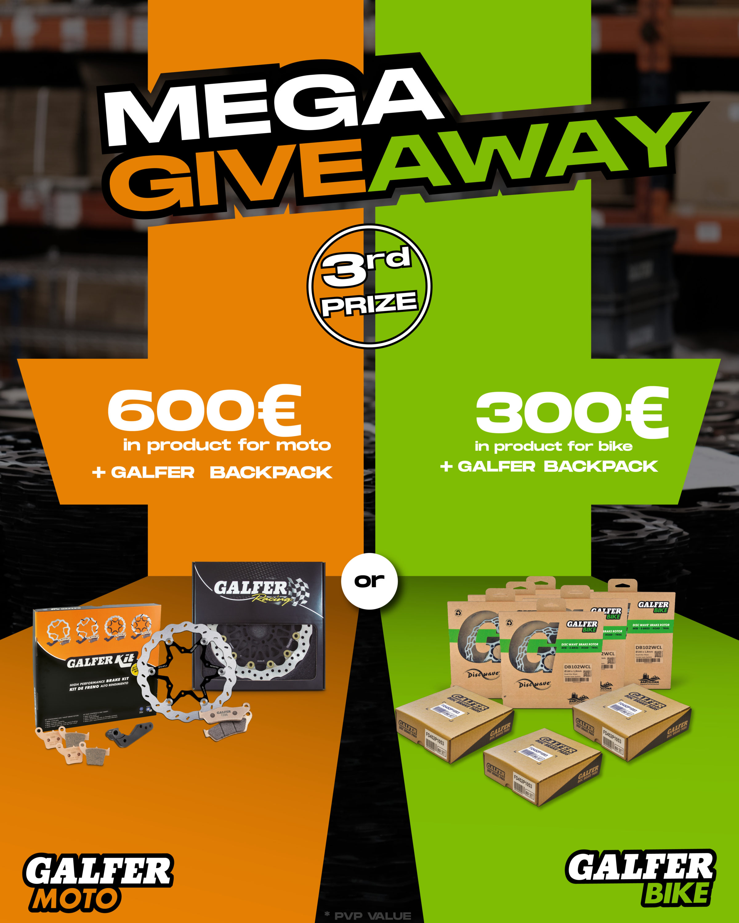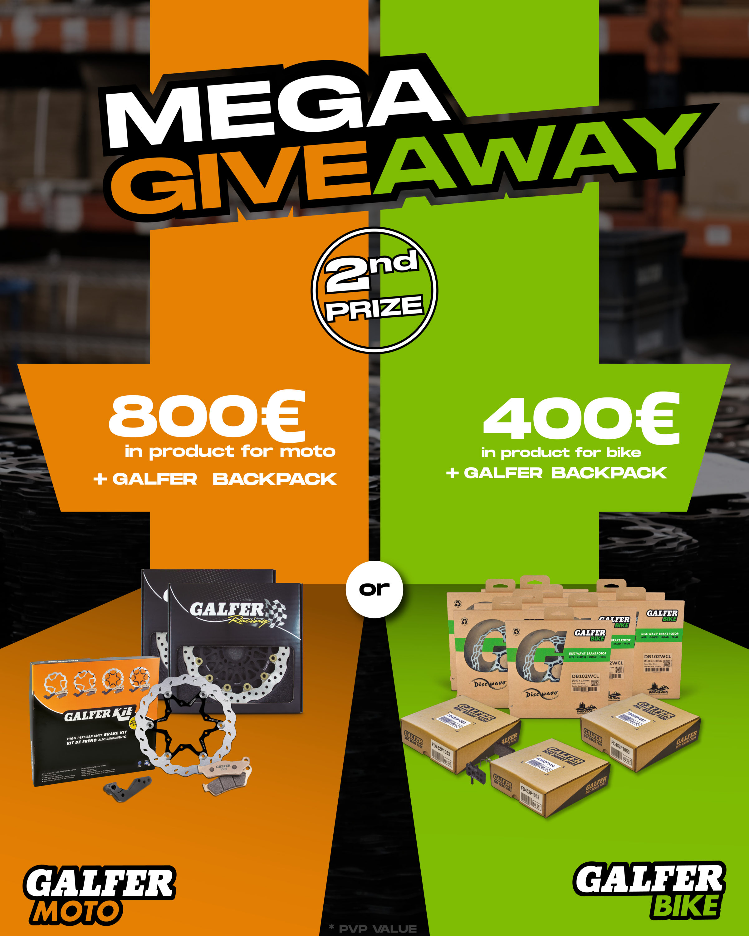Per promuovere questa novità, mercoledì 1/2/2023 Galfer trasmetterà su entrambi gli account Instagram un mega-sorteggio di prodotti frenanti del valore totale di 3.500 €. Verranno estratti fino a 10 fortunati vincitori che potranno scegliere i prodotti frenanti Galfer ideali per la loro moto o la loro bici. I premi verranno estratti partendo da quello di valore maggiore e il sorteggio sarà attivo fino a martedì 7/2/2023 esclusivamente su Instagram. I requisiti per la partecipazione sono: