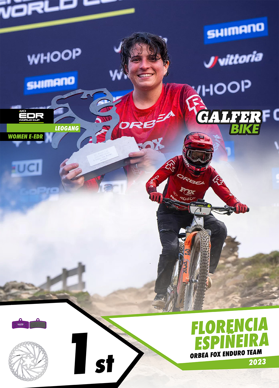 Nella disciplina dell’Enduro, c’è stata una vittoria fenomenale per Florencia Espiñeira e la sua Orbea Wild nella categoria E-EDR (biciclette elettriche) femminile. “Flo” ha ottenuto un vantaggio di oltre 30 secondi rispetto alla seconda classificata. Espiñeira e l’intero team Orbea Enduro utilizzano anche i dischi freno “Disc Shark®”, ma in questo caso abbinati alle pastiglie freno G1652, appositamente progettate per le E-Bike. Nella categoria maschile E-EDR, grande podio (3º) conquistato dal portoghese Tiago Ladeira (Miranda Factory Team). D’altra parte, il corridore francese Floran Nicolai (WeRide Fulgur) ha ottenuto il 10º posto.