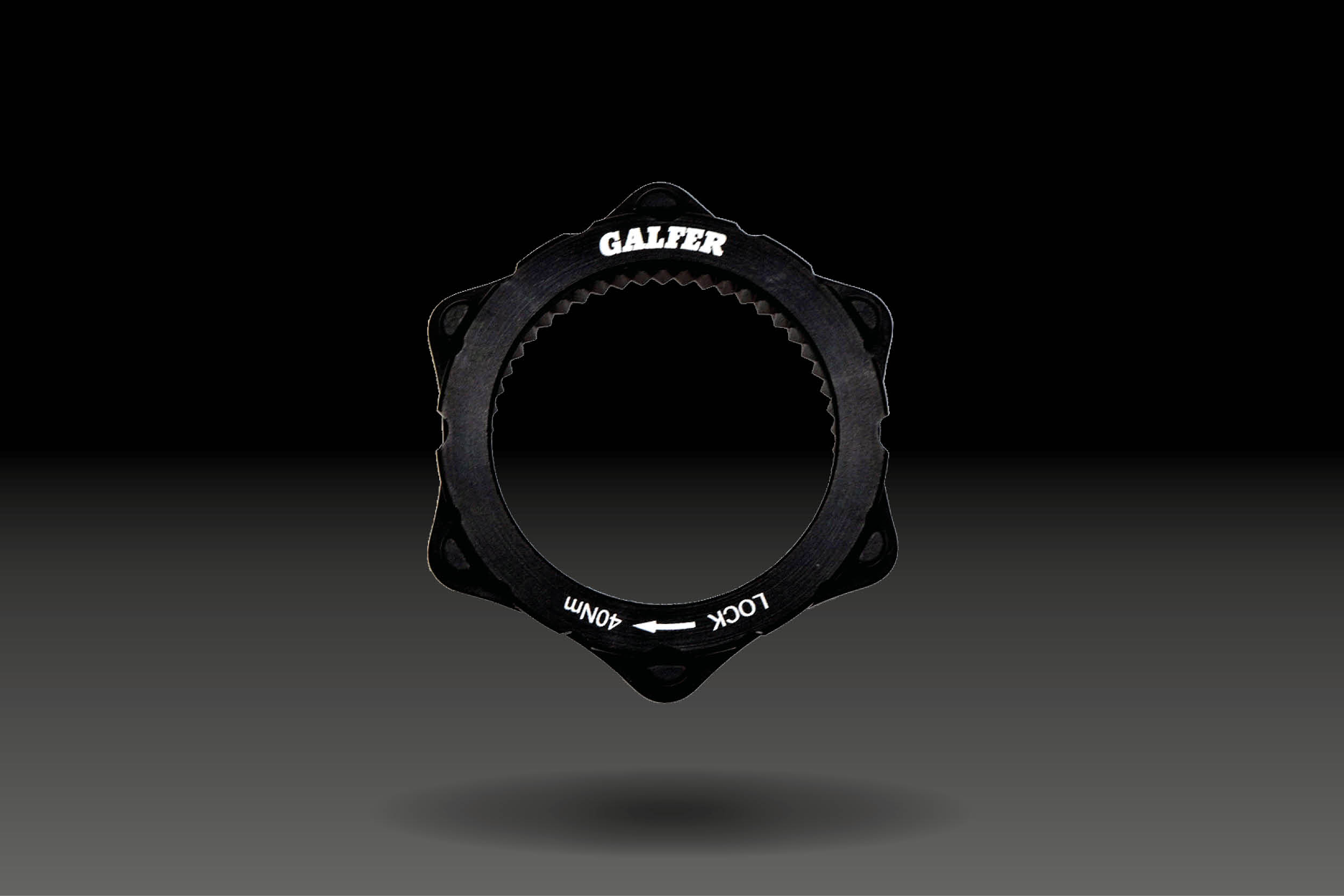 CB001: adattatore che consente il montaggio dei dischi freno GALFER Disc Wave® a 6 viti su tutti i mozzi Center Lock (non compatibile con Fulcrum AFS System, che necessita del CB003). È formato da due elementi lavorati in alluminio anodizzato di colore nero e da una rondella metallica per fissare il disco. Il montaggio è semplice e rapido e richiede solo l’attrezzo specifico per la filettatura esterna del Center Lock. Idoneo per tutti i mozzi ruota, sia di diametro grande (15-20 mm) che piccolo (9 mm).