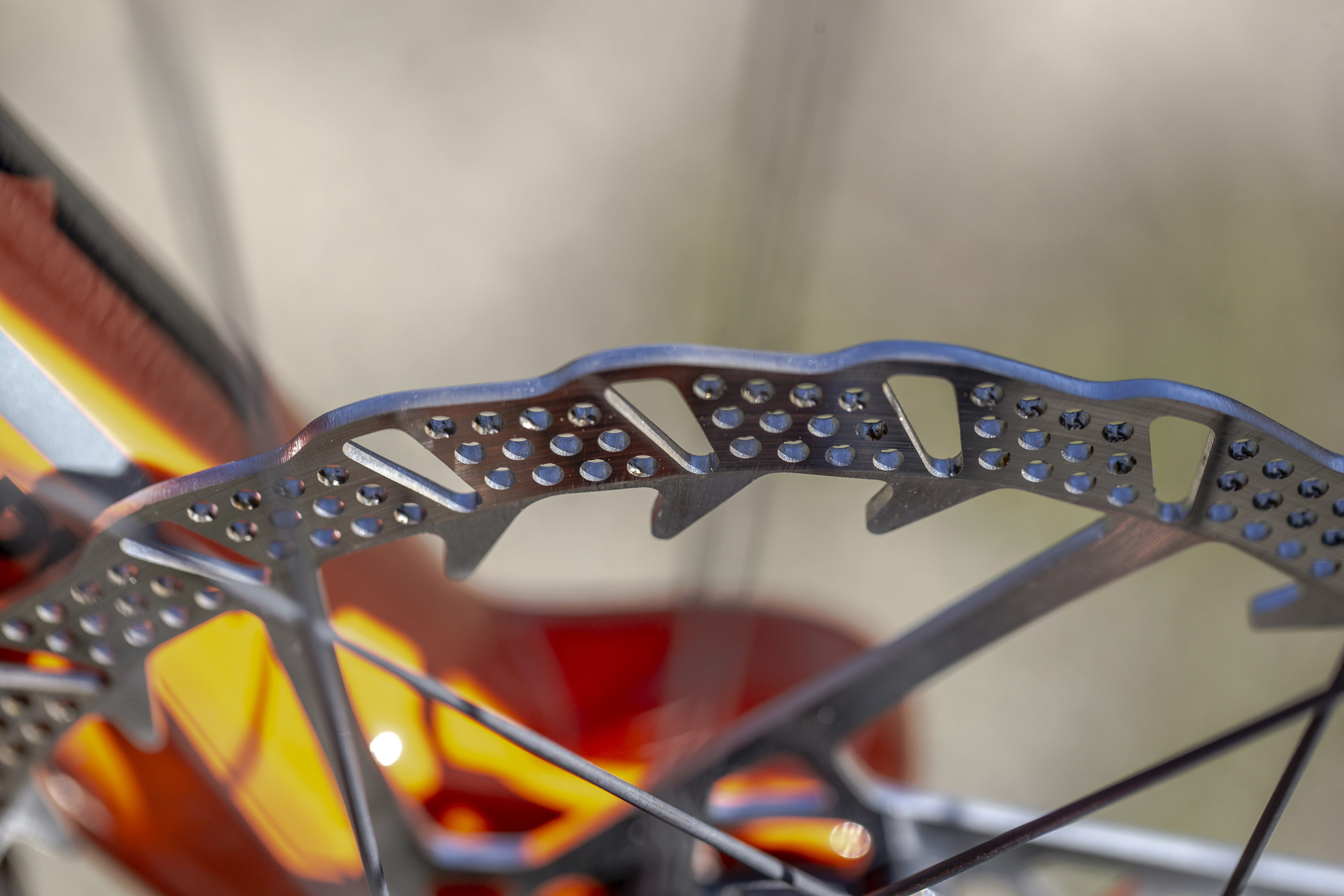 The Disc Shark® ushers in a new era of improved braking performance for bicycles, in many cases allowing the original size of the disc to be reduced without causing fatigue or overheating.