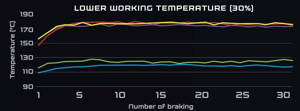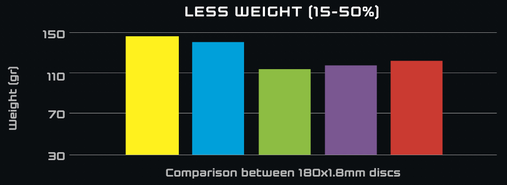 3.- LOWER OPERATING TEMPERATURE: the Disc Shark® drastically reduces the operating temperature – a 30% reduction compared to other high-end discs currently on the market – and is manufactured as one piece for greater strength.