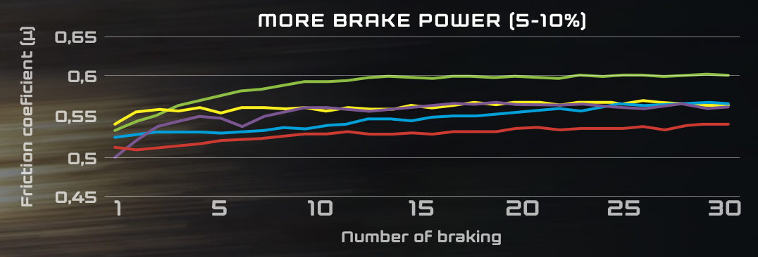 1.- GREATER BRAKING POWER: the Disc Shark®’s design means that less pressure is required in the brake line under the most fatiguing conditions, meaning less effort is required to brake. This translates into a 5-10% increase in braking power under normal conditions.