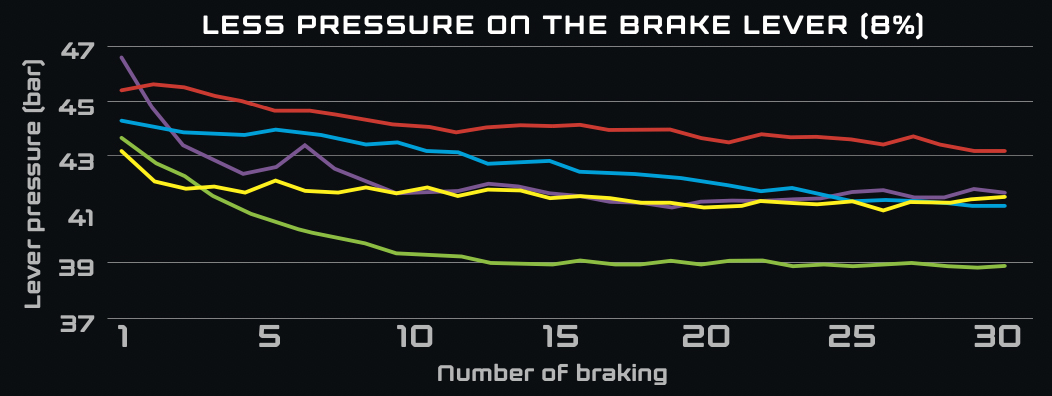 2.- MORE STABILITY: even in the least favourable conditions in terms of temperature (steep gradients, high speeds, high ambient temperature and large mass), the Disc Shark® maintains stable and consistent behaviour at all times. Its structural design adapts to the different disc diameters to achieve adequate stiffness for each model.