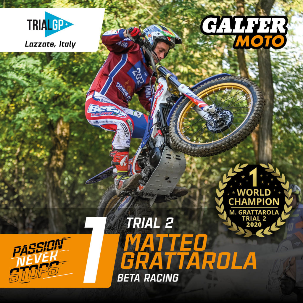 In the TR2 category, the Italian rider Matteo Grattarola (Beta Trial), who uses GALFER brake products on his Beta motorcycle, was also crowned world champion. Grattarola arrived in Italy with a significant advantage over his closest rivals and his victory on the first day of the GP was enough to make him mathematically uncatchable in the championship.