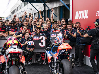 In Moto2, the extraordinary riders of the MT Helmets-MSI team, Ai Ogura and Sergio García, shone with outstanding performance. Both started from the front row and maintained a fast and consistent pace, standing out with impressive overtakes. Ai Ogura, with a phenomenal feeling at the end of the race, prevailed over his rivals, achieving his second victory of the season. Sergio García, after a solid and strategic performance, secured third place, adding valuable points that keep him as the undisputed leader of the championship with 138 points, followed by Ogura just 14 points behind. This victory marks the fourth in eight races for the formidable MT Helmets-MSI team in Moto2, demonstrating their dominance, driven in large part by the innovative Galfer Floatech® brake discs, adaptable to various race conditions.