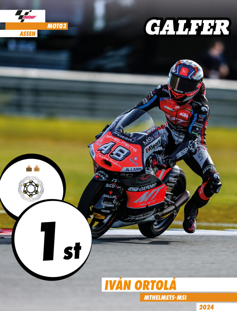 Ai Ogura and Iván Ortolá conquer victory, while Sergio García and David Muñoz step onto the podium in Moto2 and Moto3, respectively, at the thrilling Dutch GP, all using the exceptional Galfer Racing brake products.