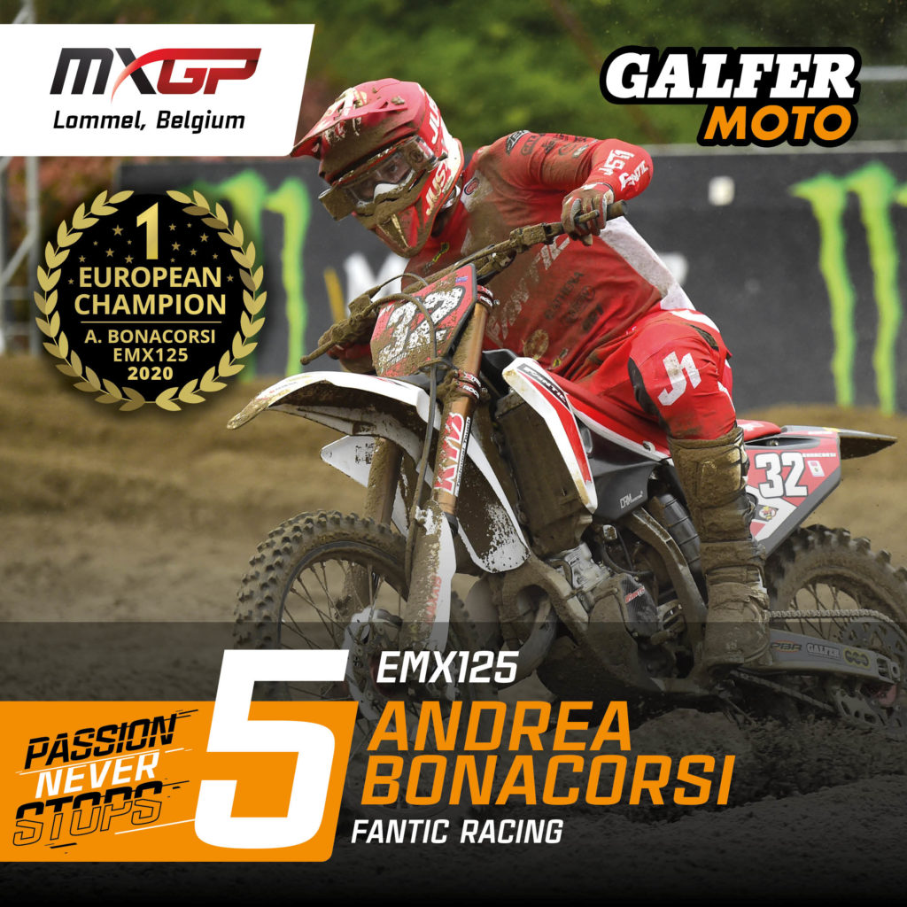 Andrea Bonacorsi has won the European Motocross Championship in the 125cc category, the first title in the return to competition of Fantic, the legendary motorbike brand.