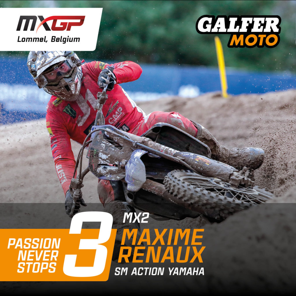 In the MX2 category, the French rider Maxime Renaux (SM Action Yamaha) returned to the podium in Lommel and consolidated his third position in the championship’s general classification.