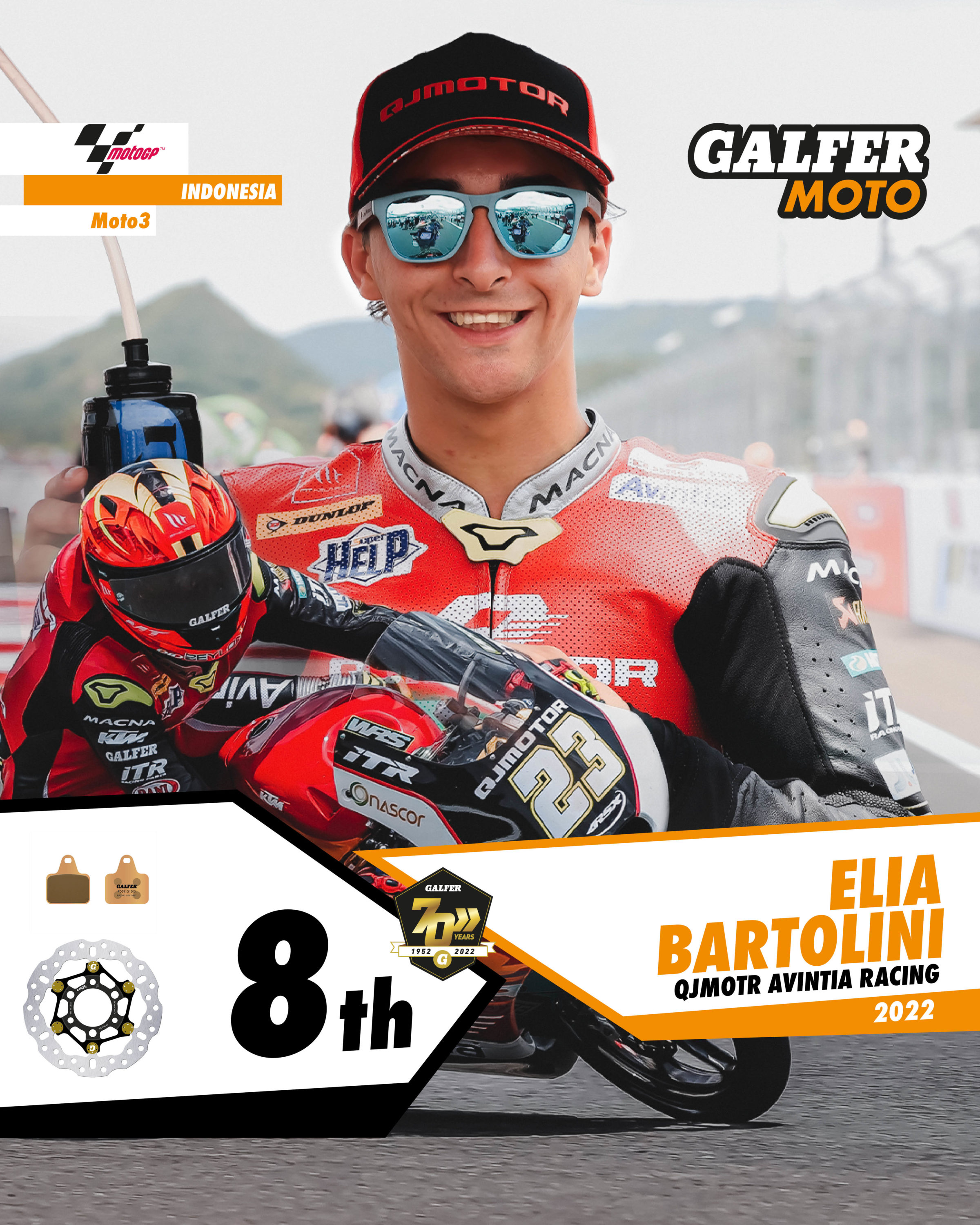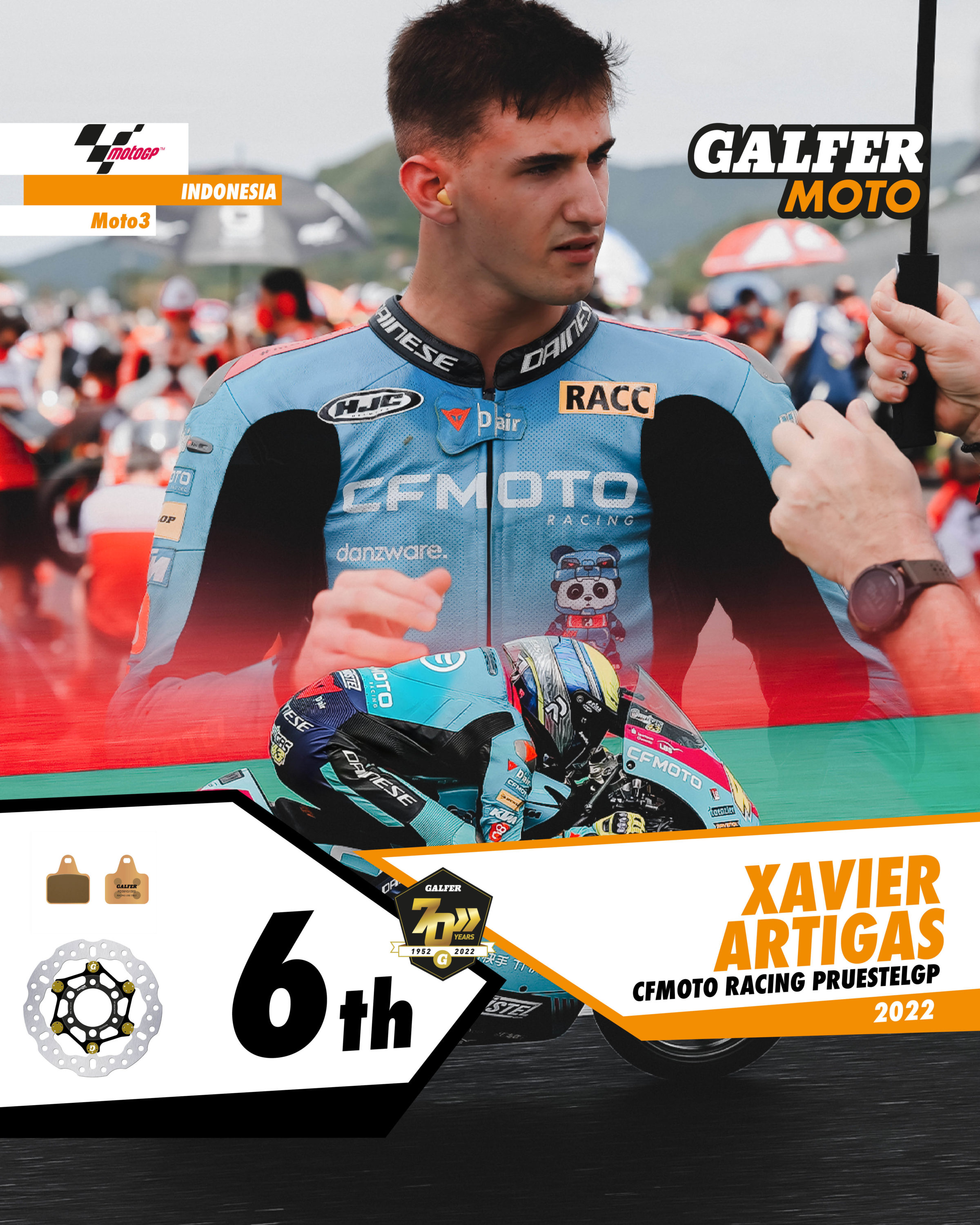 Three other Galfer representatives also made it into the top ten: Xavi Artigas (Prüstel) 6th, Elia Bartolini (QJMOTR Avintia Racing) 8th and Tatsuki Suzuki (Leopard Racing) 10th.