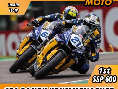 The Supersport race was marked by the crash of the three riders riding after Krummenacher and Caricasulo. The Evan Bros riders decided the race in the last lap when Randy passed Federico and won. Krummenacher leads the WSSP with 115 points, 22 more than Caricasulo, who’s 15 points ahead the third.