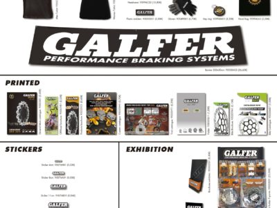 Industrias Galfer ofrece una nueva línea de merchandising con algunas novedades, como los tubulares para cuello o las nuevas gorras con el logotipo en relieve 3D. Además también se ha actualizado el diseño de las camisetas masculinas y se ha añadido una opción femenina. En total hay hasta 32 artículos disponibles, entre ropa, protección, documentos impresos, adhesivos y expositores.