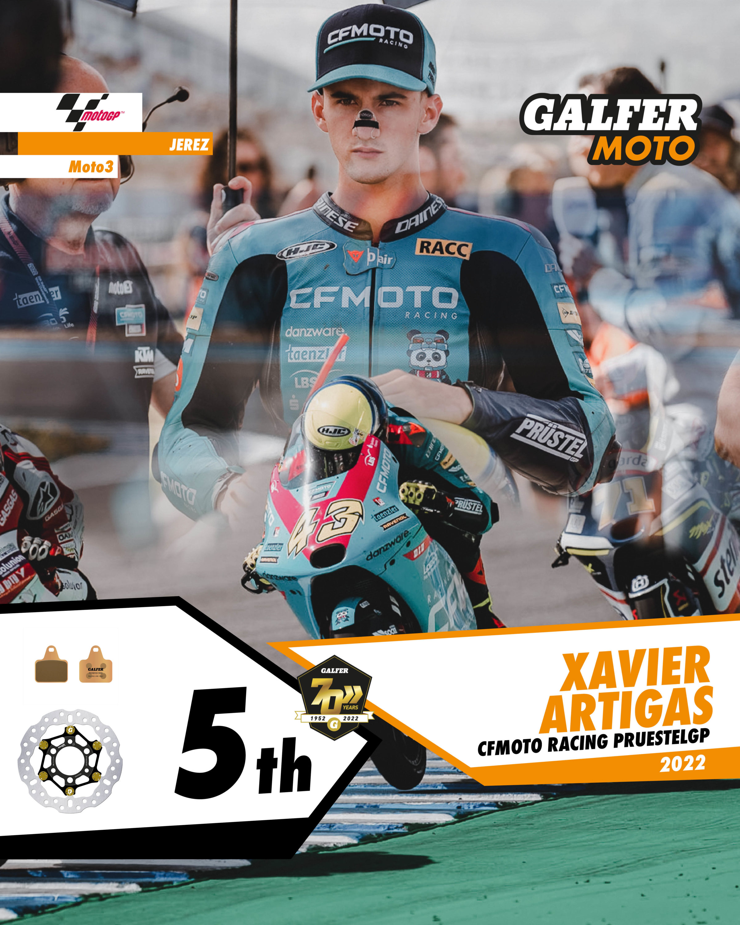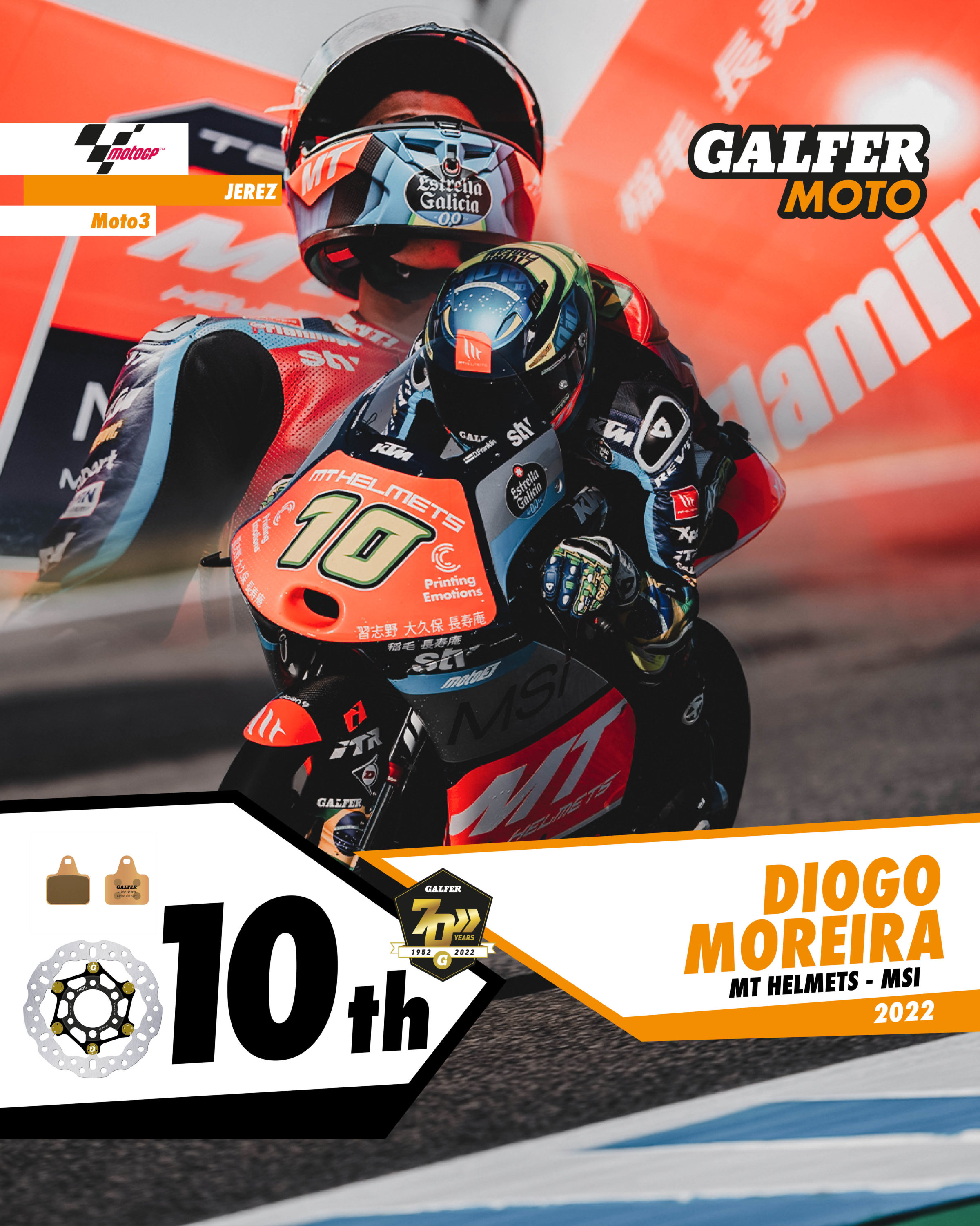 An exciting weekend at the Jerez circuit, with a return to full audience capacity and Galfer riders earning four top ten positions: three in Moto3 and one in Moto2.