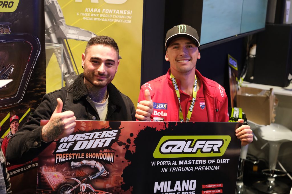 Galfer’s stand at EICMA 2024 also featured an exceptional lineup of over 20 internationally renowned riders, who participated in autograph sessions and entertained the audience, including big names like Tony Cairoli, Valerio Lata, Massimo Bianconcini, Alessandro Lupino, Marco Melandri, Steve Holcombe, and Federico Caricasulo.