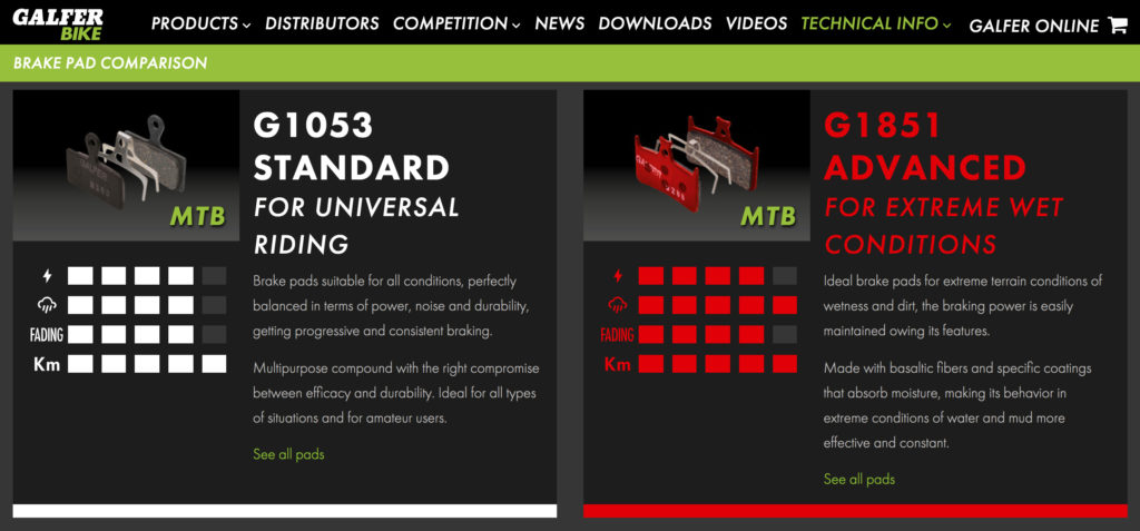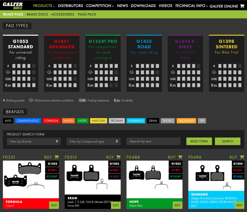 Bike Brake Pads Search Tool: this improves the search function for bicycle brake pads, enabling queries based on brand, type of compound or brake caliper model.