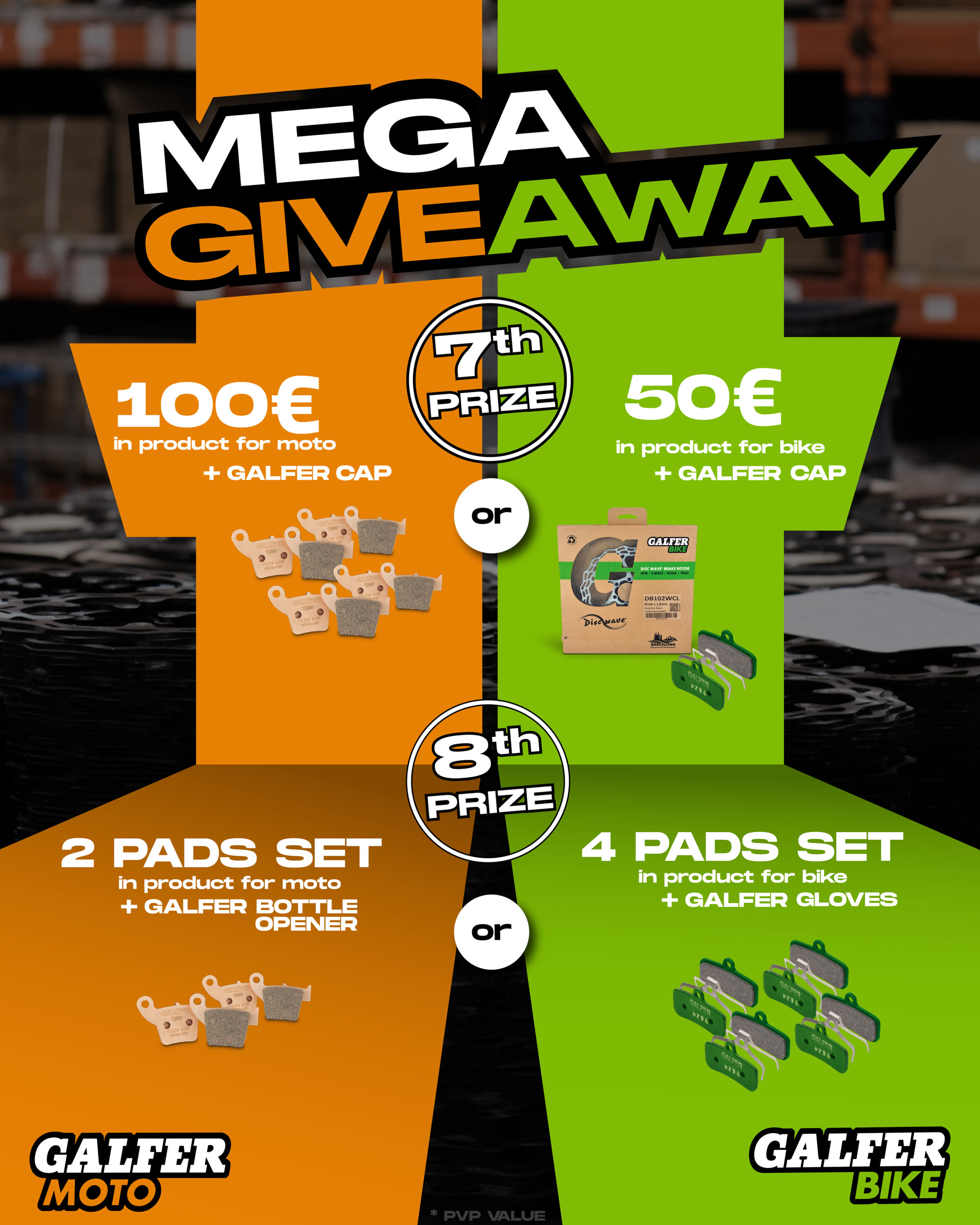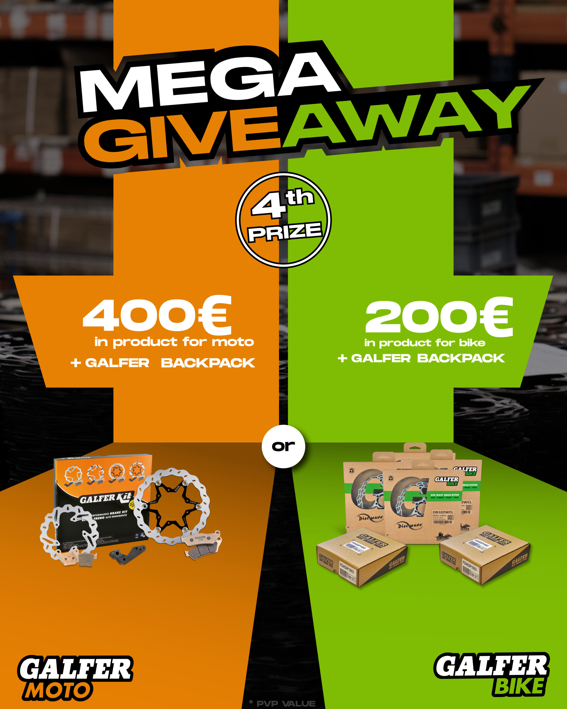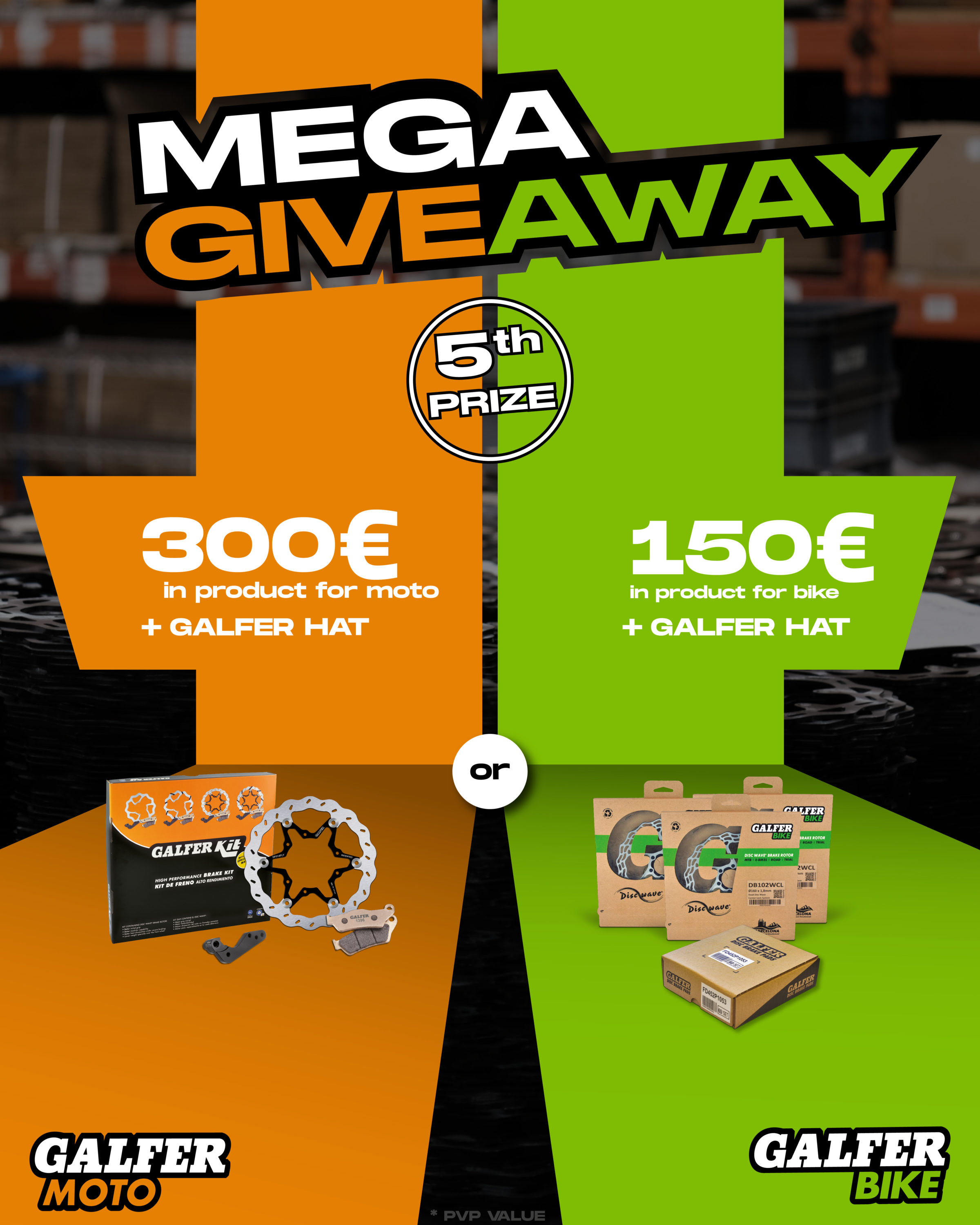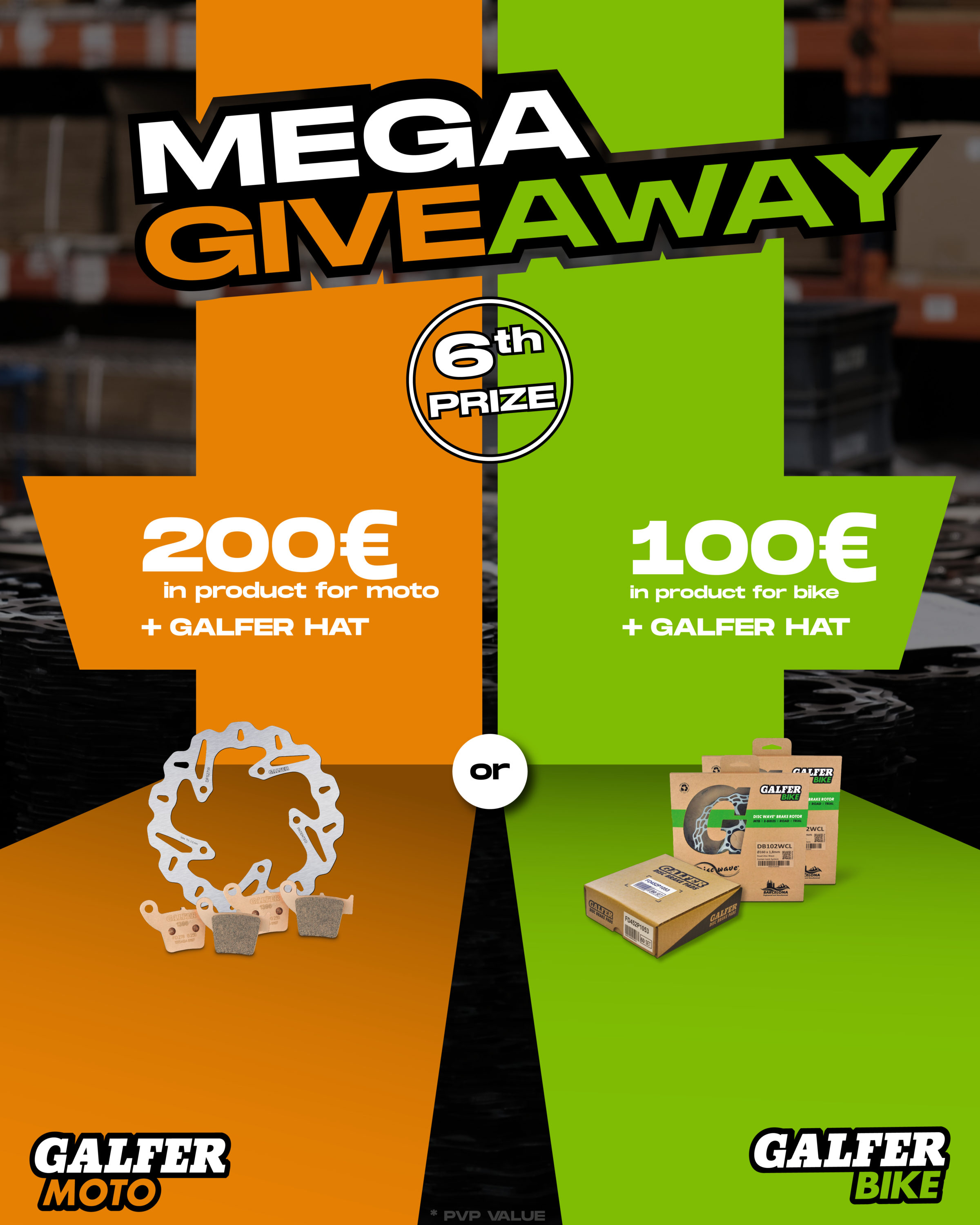 To mark this initiative Galfer is holding a mega giveaway of brake products worth a total of €3,500 on Instagram on Wednesday 01/02/2023, shared on both Galfer accounts. There will be up to 10 lucky winners who will get to choose Galfer brake products for their motorbikes or bicycles. The prizes will be awarded from highest to lowest value and the draw will be open until Tuesday 07/02/2023, exclusively on Instagram. To enter, participants will need to: