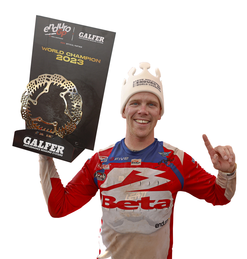 Developed in collaboration with the reigning enduro world champion, Steve Holcombe, and used by him during the entire EnduroGP World Championship season, Galfer’s new Disc Shark® already boasts a very respectable list of awards on its debut, with three world titles. The British riders from the Beta Factory Team, Steve Holcombe and Brad Freeman, won the EnduroGP, E2 and E3 titles in 2023.