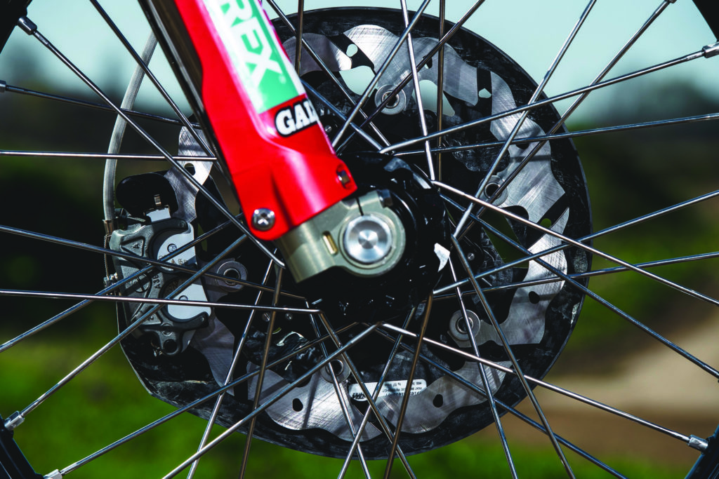 All the GALFER riders used various versions of “Disc Wave®” disc brakes (fixed, floating, grooved, oversize) and brake pads, in the specific compounds for each discipline (sintered G1396R for Enduro; semi-metallic G1805 or sintered G1395 for Trial).