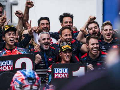 It’s been a spectacular MotoGP weekend for Galfer’s interests, with their Moto2 riders leading the championship with overwhelming dominance. Sergio García, who arrived at Le Mans in second place overall, had an impeccable weekend. During the free practice sessions, Sergio set the absolute track record for the Moto2 category with a time of 1:35:473, which no one could beat. In the qualifying session, García secured the third position, placing him on the front row of the grid. And in the race, Sergio made a great start, taking the lead from the first corner, a position he maintained until the end. With fast and solid riding, the Spanish rider consistently clocked excellent times on every lap, allowing him to extend the lead and win the race by over three seconds. Behind him, the rest of the riders battled hard to reach the podium. One unexpected contender was Japanese rider Ai Ogura, Sergio’s teammate and also a Galfer rider, who made an impressive comeback from 17th position on the grid to finish 2nd, delivering bold and determined overtakes in the final laps.