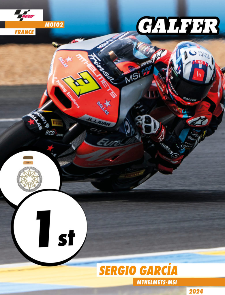 Sergio García and Ai Ogura, Galfer riders from the MT Helmets – MSI team, have secured the first and second positions in the Moto2 French GP with the innovative Floatech® brake discs.