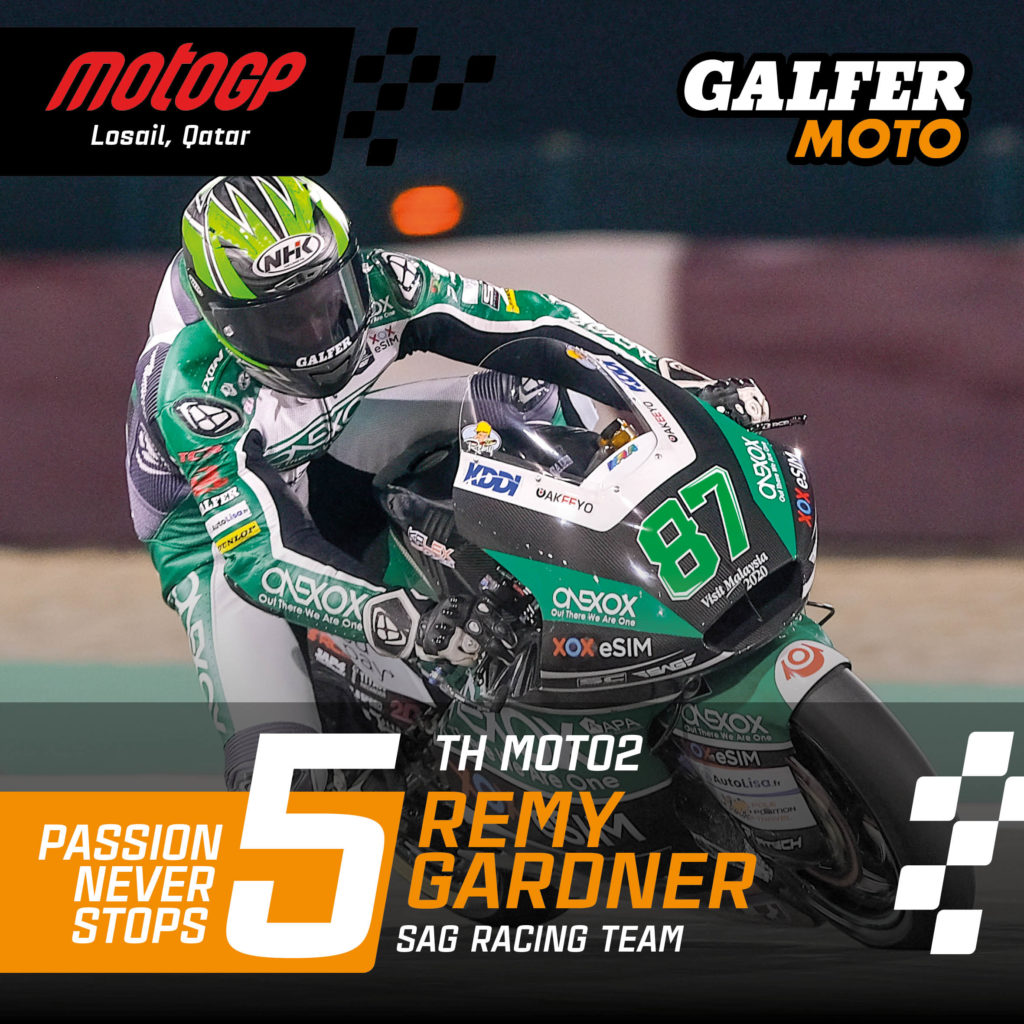 Top 5 di Remy Gardner in Moto2 e cinque Top 10 dei piloti GALFER Moto3 all’inizio del Campionato del Mondo 2020 in Qatar.