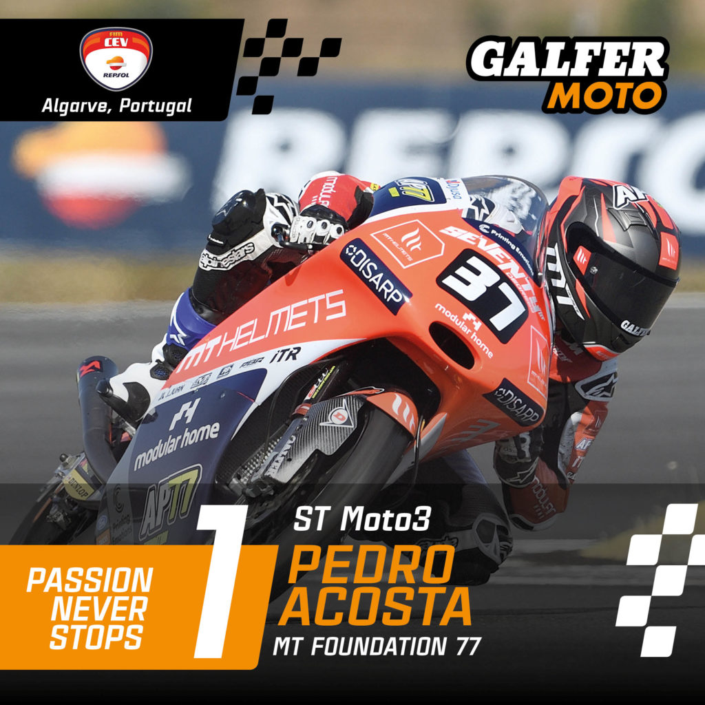 Pedro Acosta (MT-Foundation77) partiva dalla pole position e aveva buone possibilità di ottenere il trionfo al secondo tentativo. E così è avvenuto, ma con appena 0,017 secondi di vantaggio su Xavi Artigas (Leopard Impala Junior), un altro pilota GALFER. Dopo il concitato arrivo di Estoril, in questa occasione la vittoria ha arriso alla KTM di Pedro Acosta davanti alla Honda di Xavi Artigas, entrambe equipaggiate con dischi freno Racing Disc Wave® e tubi freno GALFER.