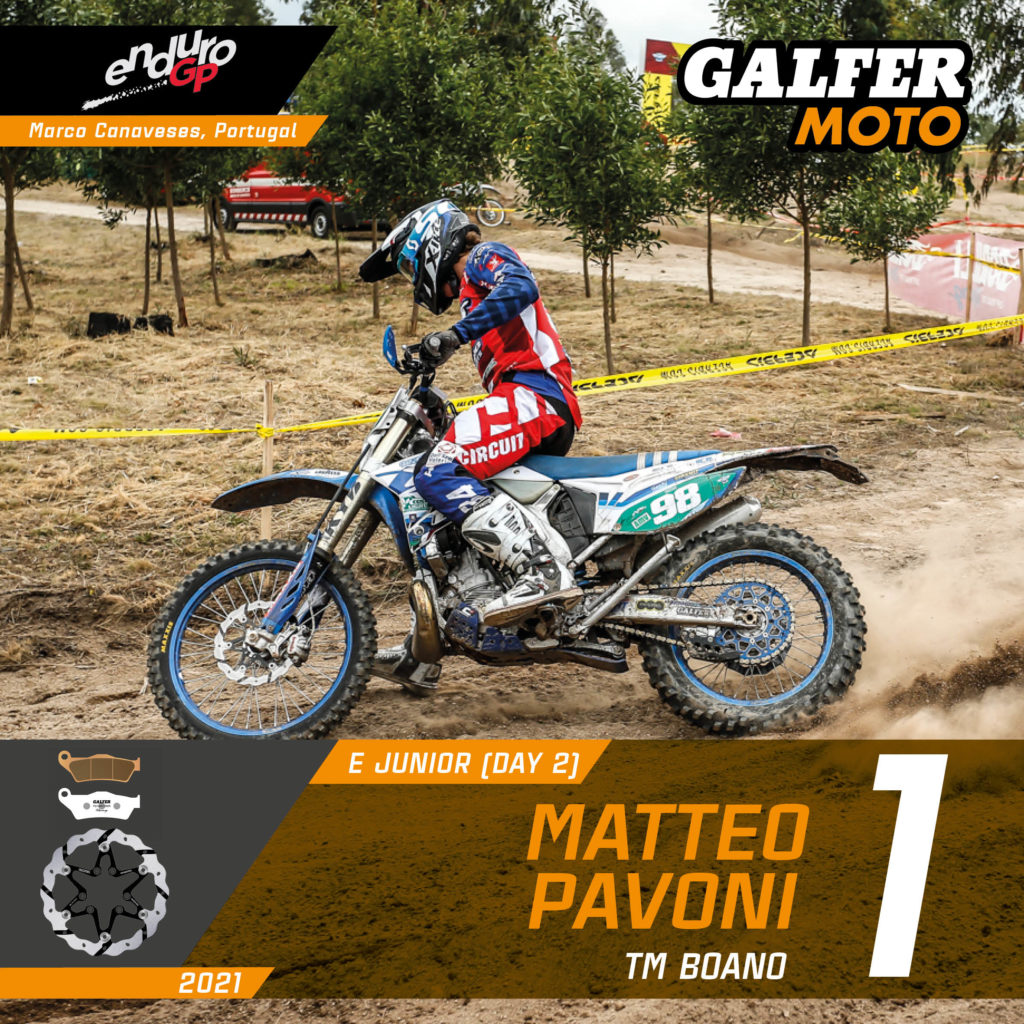 In the Junior category, two TM-Boano riders dominated the weekend. Lorenzo Macoritto won on Saturday and Matteo Pavoni on Sunday, both on their Tm bikes equipped with GALFER brake products.