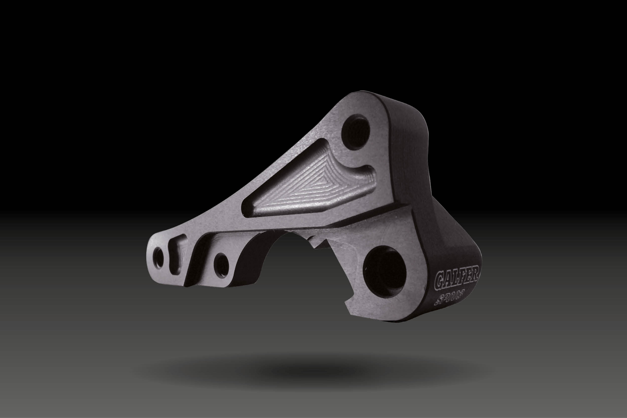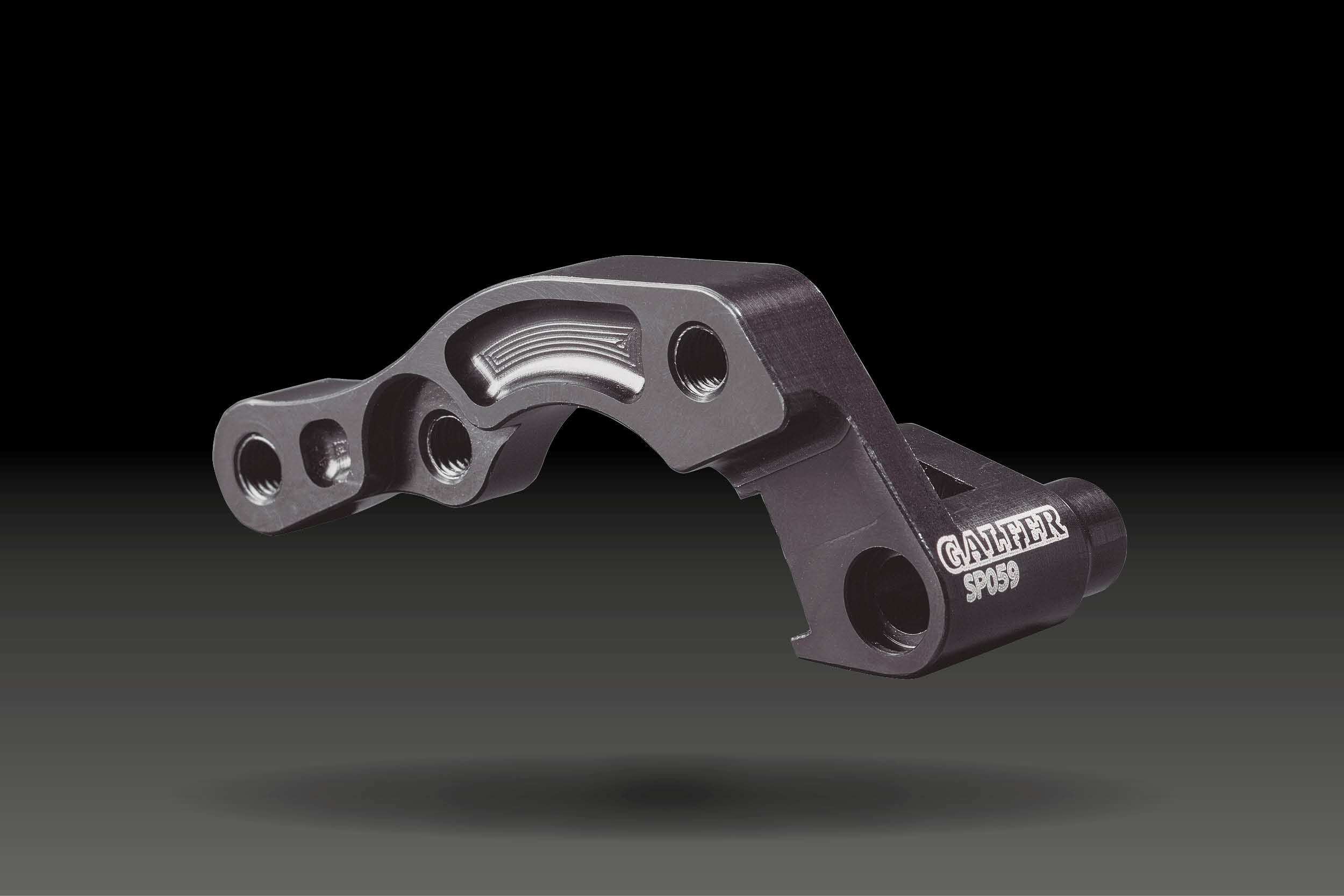 Caliper adapter bracket for oversized brake rotors; manufactured by machining, stamping and/or forging of lightweight yet strong duraluminium. Designed to ensure optimal performance and maximum security.