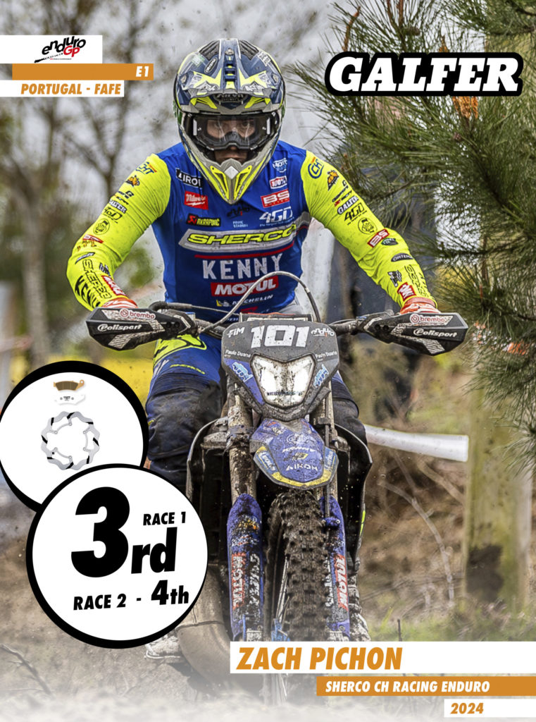 The Sherco CH Racing Enduro team riders achieved excellent results, with Hamish Macdonald achieving a double podium and a victory, leaving him in sixth position in the overall Enduro GP standings. In the same E3 category, Antoine Magain achieved fourth and seventh place. Zachary Pichon in the E1 category climbed the podium on Saturday in third place and finished fourth on Sunday, securing ninth position in the overall Enduro GP standings. Jeremy Sydow, also in the same E1 category, achieved a solid fifth place in both heats. Finally, the rider Wil Rupretch finished 8th and 12th.