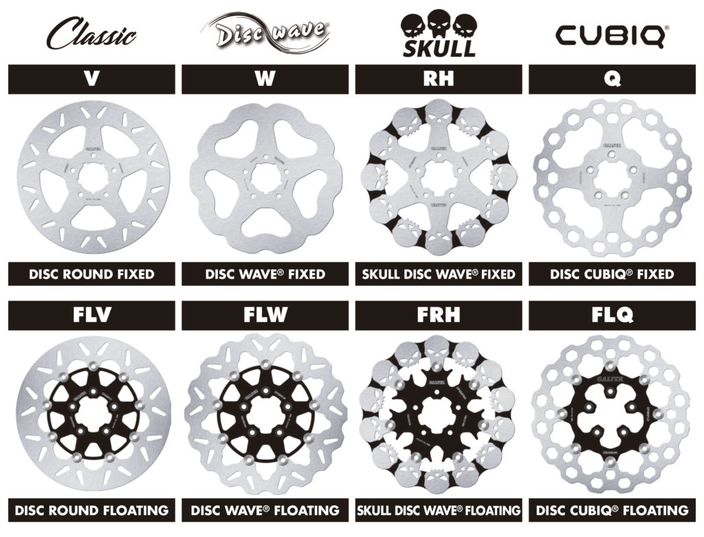 One section of the GALFER brake components catalogue is dedicated to the custom world and to V-Twin fans who can choose a brand specialising in braking systems and ensure the perfect combination of power, quality and design. GALFER offers these four different versions of brake discs to customise your bike: