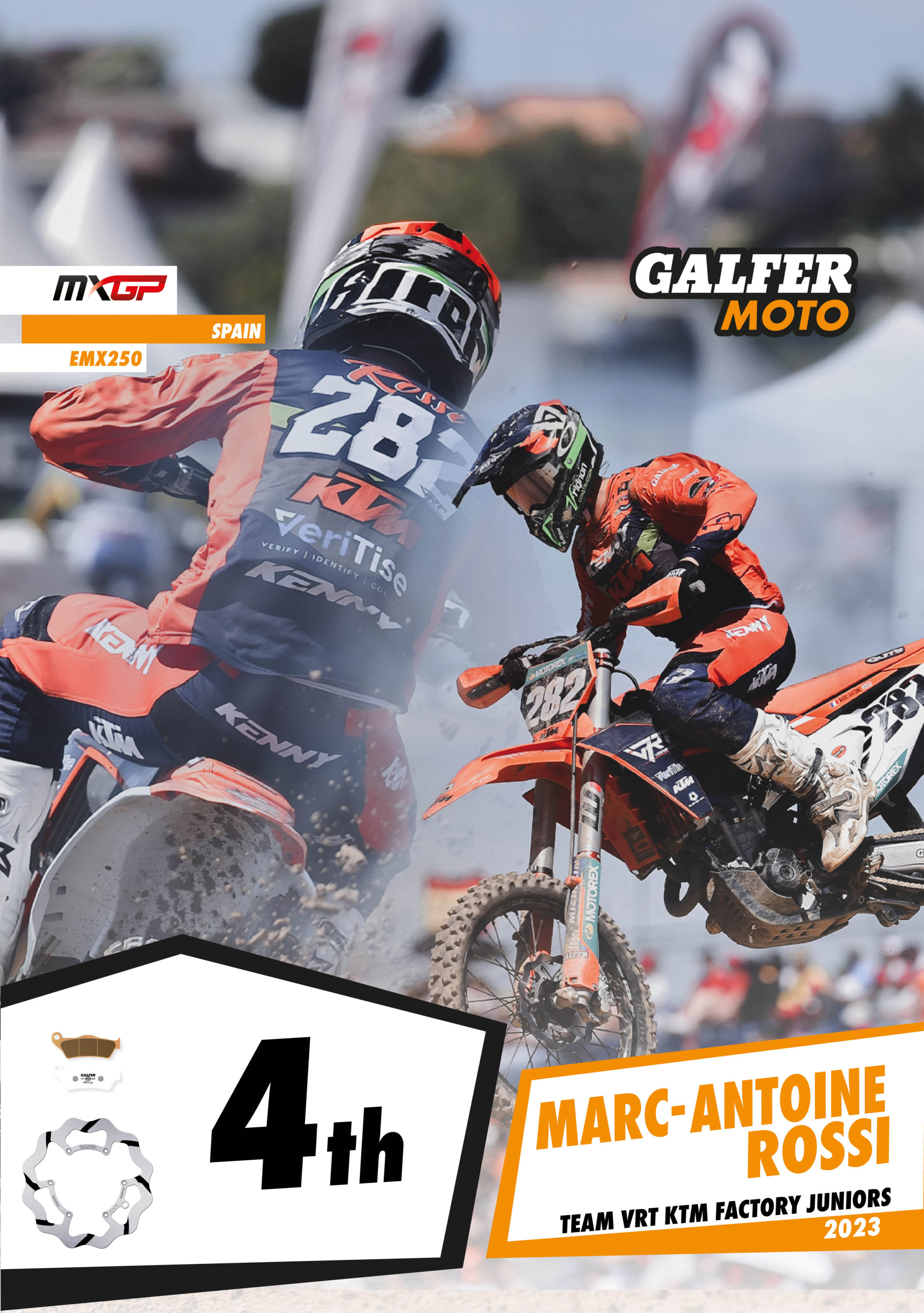 In the EMX250 class, Team VRT KTM Factory Juniors achieved a double top ten, with a great weekend for Marc-Antoine Rossi, who finished in 4th place. His team-mate Ferruccio Zanchi came in just behind him in 6th position at the Spanish Grand Prix in Arroyomolinos.