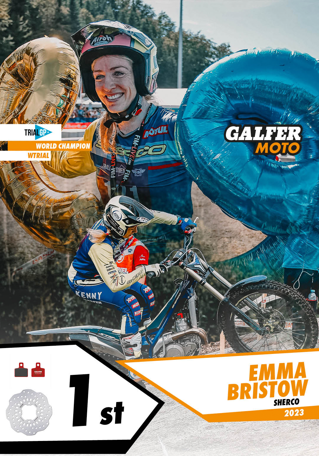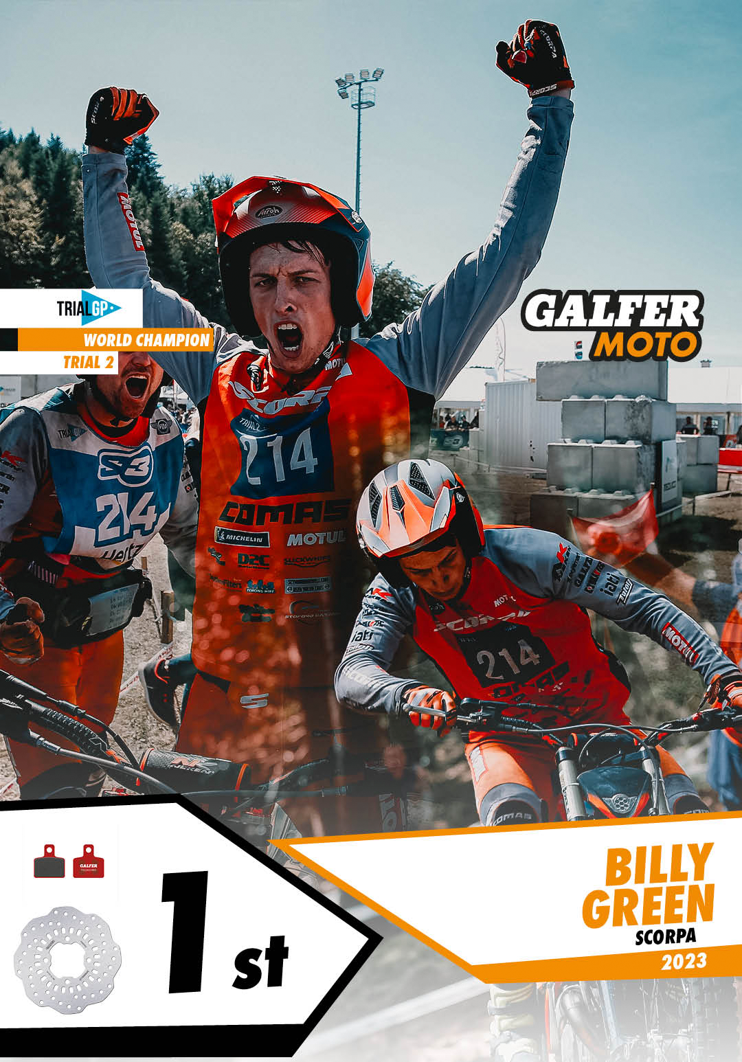 All Galfer riders relied on “Disc Wave®” W and WLLG brake discs, as well as semi-metallic Trial Top G1805 brake pads, to achieve their impressive performances.