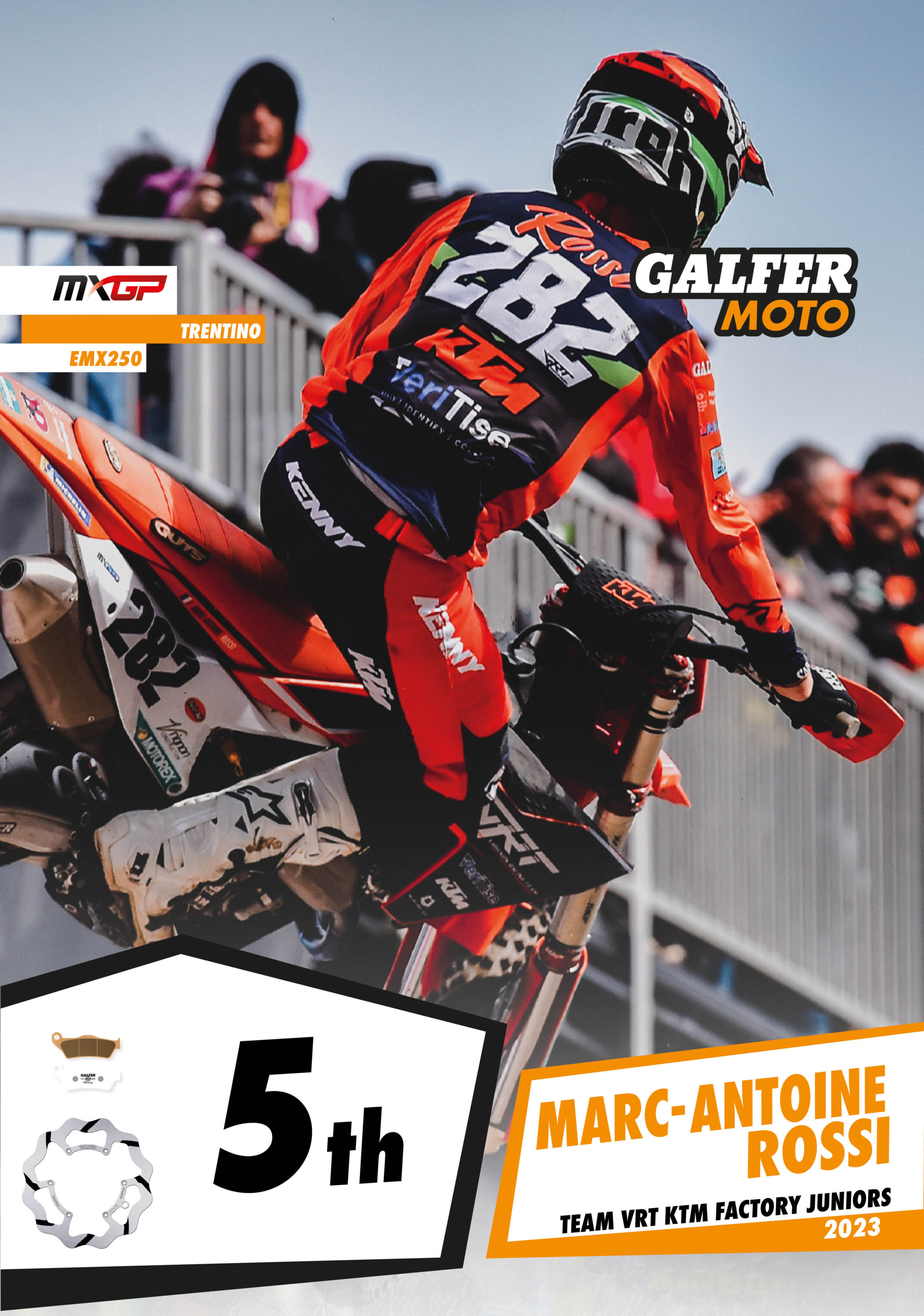 Galfer is an official sponsor of the Motocross World Championship for the third consecutive year, with advertising displayed around the circuit and in different stands. Galfer is also represented in the paddock area, where its brake products are on show and various activities are conducted, such as autograph sessions with the most popular riders.