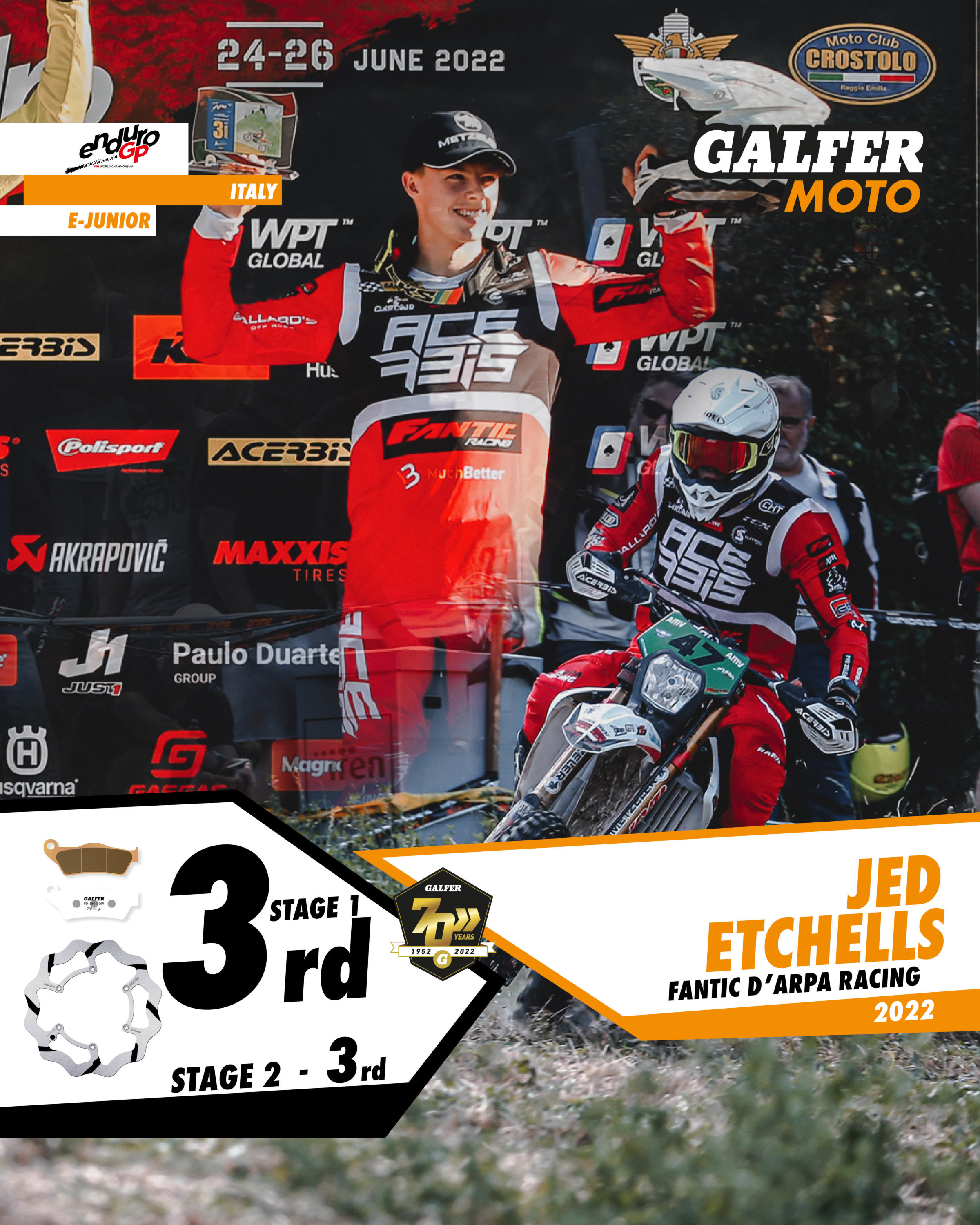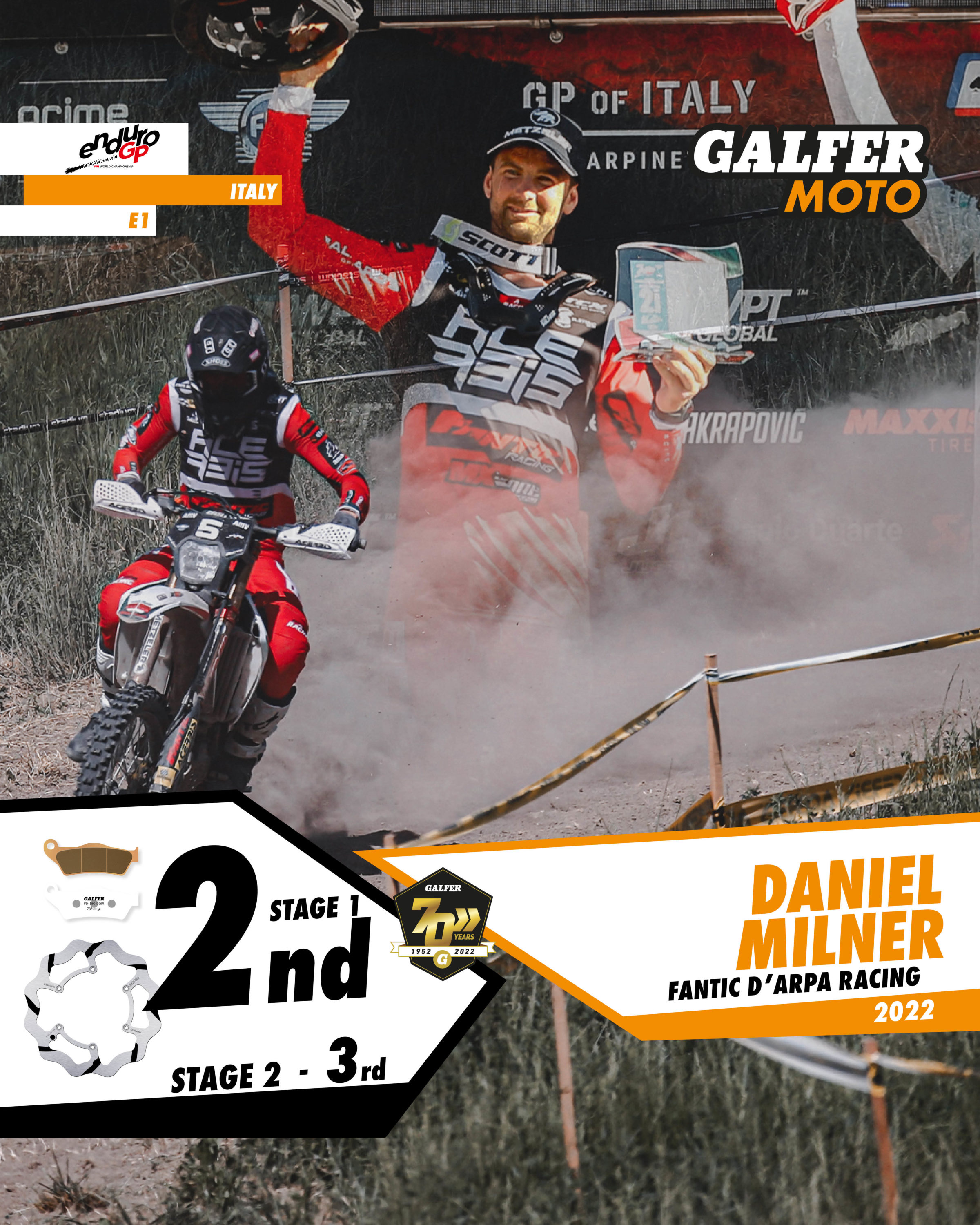 Among the other Galfer representatives, notable mentions include the podium finishes by Daniel Milner (#5), 2nd and 3rd in the E1 category; Jed Etchells (#47), with two third places in the Junior category; and Matteo Pavoni (#98), second in E2 on the first day.